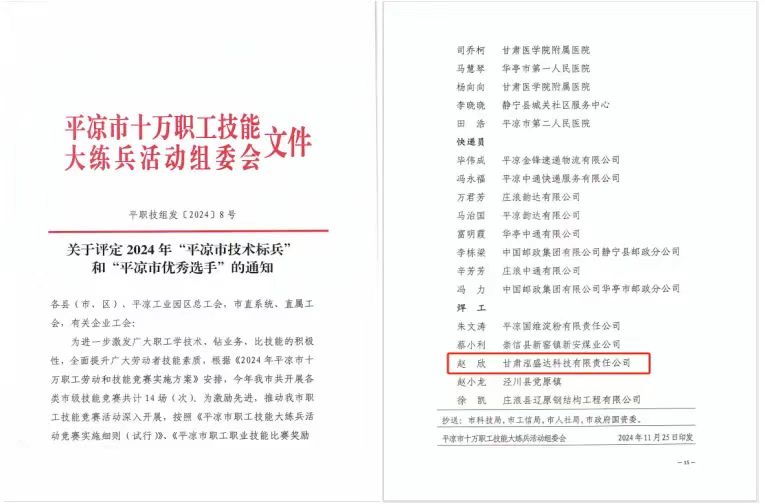 2024-11-26近日,平?jīng)鍪惺f(wàn)職工技能大練兵活動(dòng)組委會(huì)印發(fā)了關(guān)于評(píng)定2024年“平?jīng)鍪屑夹g(shù)標(biāo)兵”和“平?jīng)鍪袃?yōu)秀選手”的通知,甘肅泓盛達(dá)科技有限責(zé)任公司趙欣獲得“平?jīng)鍪袃?yōu)秀選手”稱號(hào)。趙欣此次獲得“平?jīng)鍪袃?yōu)秀選手”榮譽(yù)稱號(hào),既是對(duì)他個(gè)人敬業(yè)精神的充分肯定,也是對(duì)公司