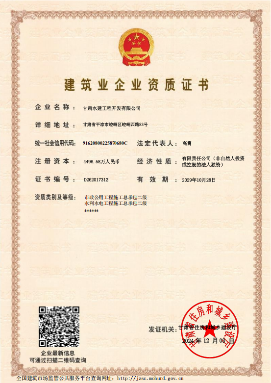 2024-12-05近日,產(chǎn)投集團(tuán)下屬企業(yè)水建公司申請(qǐng)的市政資質(zhì)已順利獲得許可。市政資質(zhì)許可是衡量企業(yè)在市政工程領(lǐng)域綜合實(shí)力的重要標(biāo)準(zhǔn),涵蓋城市道路、橋梁、排水、照明等多個(gè)領(lǐng)域。水建公司具備承接各類市政工程項(xiàng)目的資格,且在企業(yè)資產(chǎn)、專業(yè)技術(shù)人員、技術(shù)裝備以及工程業(yè)績(jī)等方