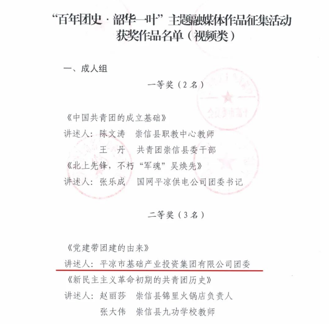 市產(chǎn)投集團團委喜獲“百年團史·韶華一葉”主題融媒體作品二等獎