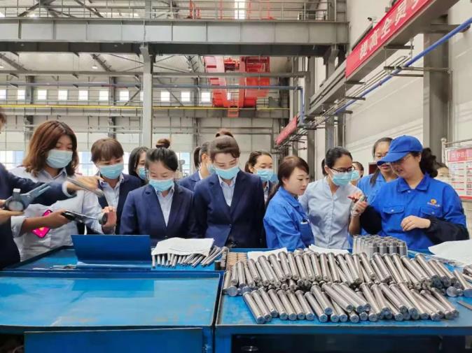 2021-09-018月31日,泓源公司婦委會(huì)組織全體女職工赴豐收公司開展“傳承三線精神,學(xué)習(xí)巾幗榜樣”觀摩學(xué)習(xí)活動(dòng)。本次活動(dòng),通過現(xiàn)場(chǎng)觀摩深入了解豐收公司車間一線女職工的工作狀況,并由豐收公司女職工現(xiàn)場(chǎng)實(shí)操,對(duì)制造原件取樣、數(shù)控機(jī)床操作、成品檢測(cè)檢驗(yàn)等進(jìn)行了演示講解。